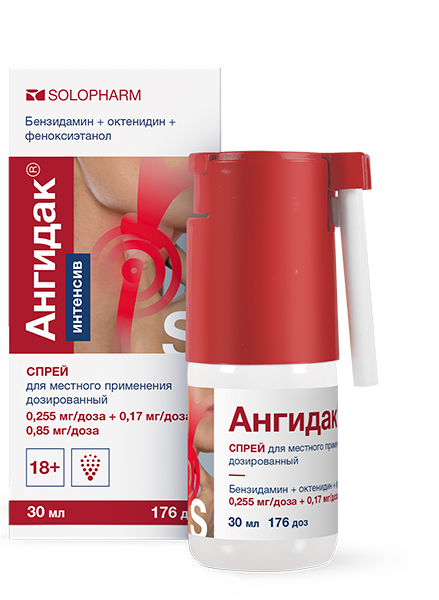 Одна доза (одно впрыскивание) соответствует 0,255 мг бензидамина гидрохлорида, 0,17 мг октенидина дигидрохлорида, 0,85 мг феноксиэтанола